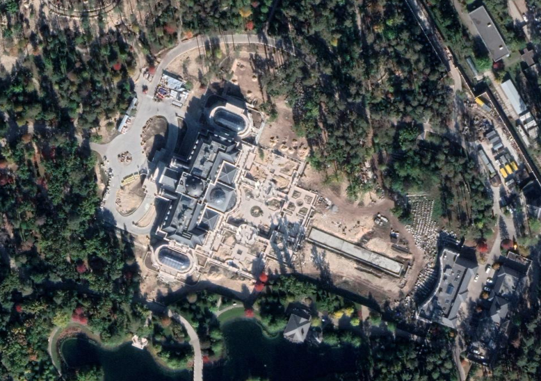 Onder het bericht van Jeff Hoeyberghs staat een community note met een artikel waarin de vermeende coördinaten van het landhuis staan. Vullen we die coördinaten in bij Google Earth, dan zien we dat het landhuis iets ten zuiden van Kiev ligt. Wat opvalt is dat de satellietbeelden genomen zijn in november 2021 en dat grote delen van het landhuis al staan. De bouw was dus al drie maanden voordat de oorlog in Oekraïne begon (februari 2022) bezig en kan dus niet gefinancierd zijn met Westers steungeld.